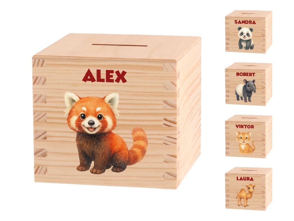 Een houten kinderspaarpot met naam en lievelingsdier helpt kinderen op een leuke manier met geld om te gaan en is bovendien een mooie decoratie voor hun kamer. Een ideaal cadeau voor elke gelegenheid!