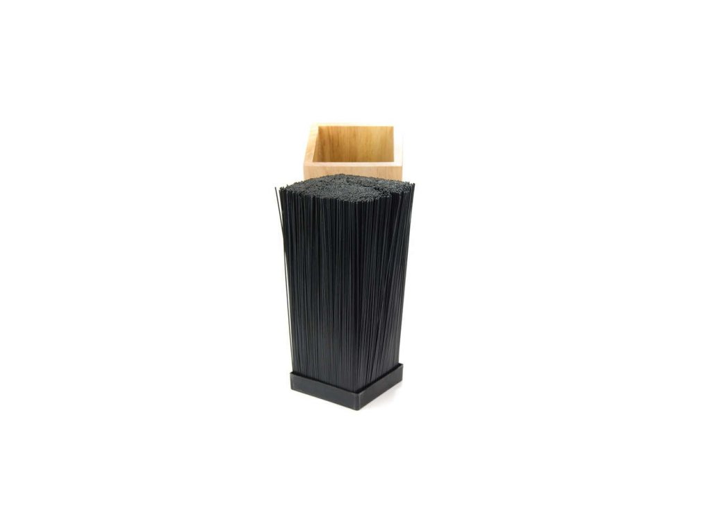 Moderne houten messenhouder met een praktische inzet met plastic haren voor het steken van keramische messen. De praktische inzet is gemakkelijk schoon te maken. Een messenblok zorgt voor een veilige opslag van messen, het opbergen van scharen en andere keukengereedschappen. Uw messen zijn altijd binnen handbereik, worden niet bot en zijn gemakkelijk te onderhouden.