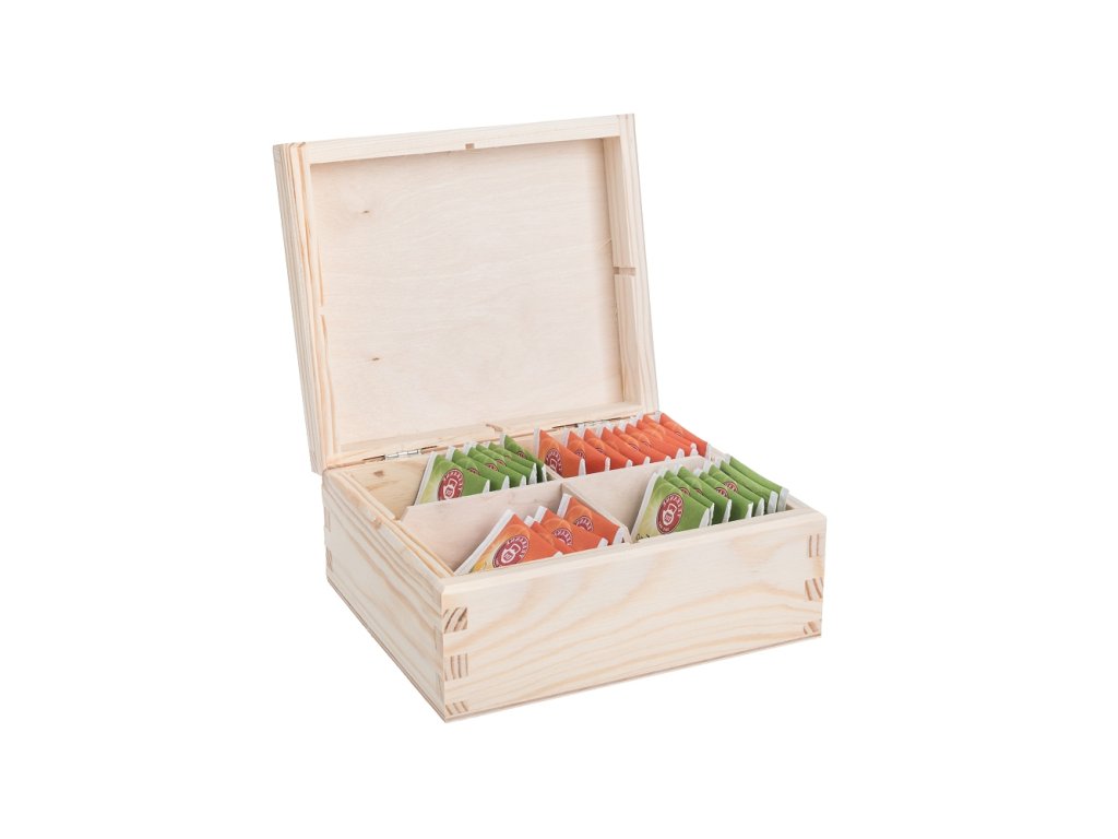 De doos heeft vier vakjes die indien nodig kunnen worden verwijderd.