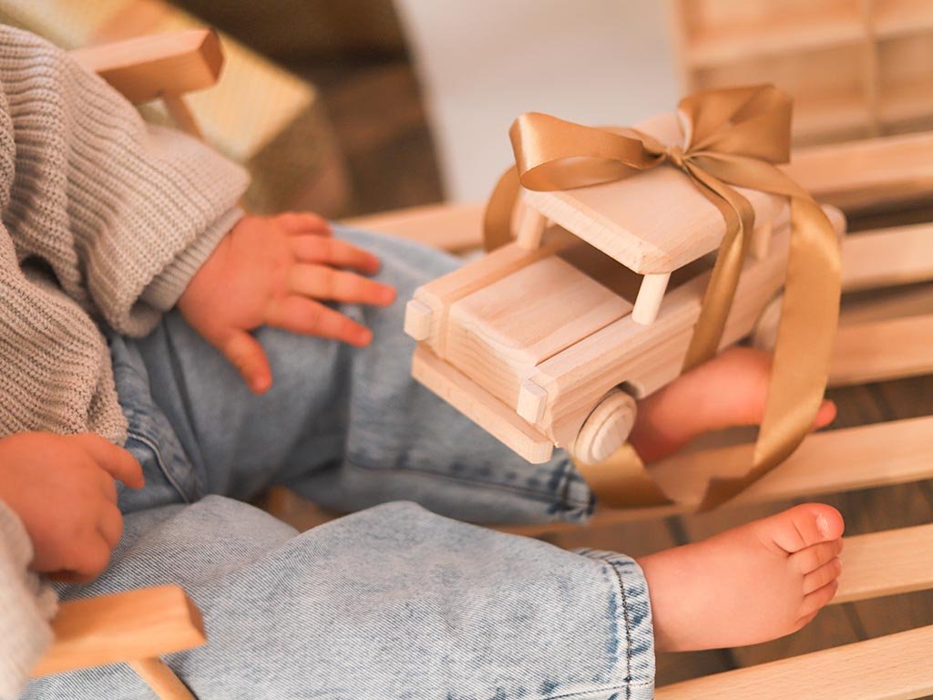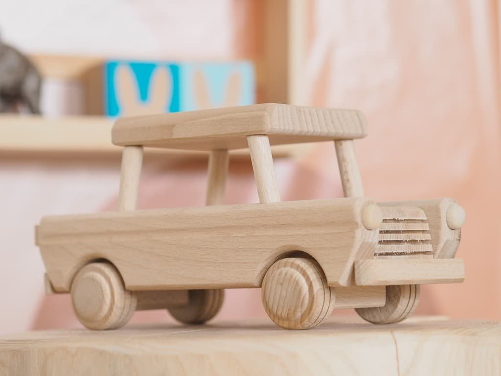 Een houten auto van massief beukenhout is meer dan alleen een kwaliteits speelgoed. Als je het bijvoorbeeld op een plank plaatst, krijg je een originele decoratie die in één oogopslag opvalt.
