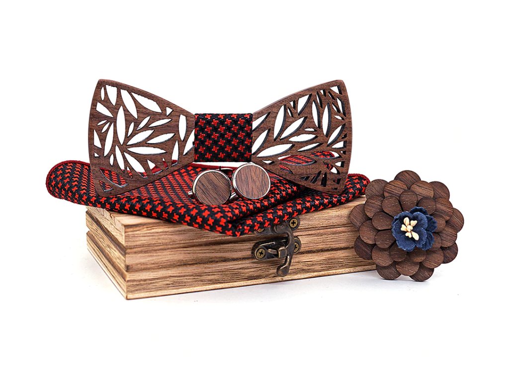 Een houten vlinderstrik van ruw hout met een origineel ontwerp vindt zijn plek in de kast van elke gentleman.