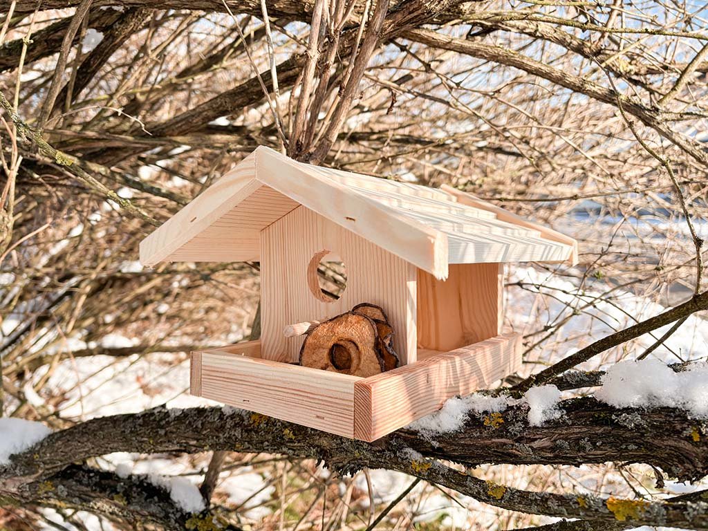 Verwen de vogels uit de wijde omgeving en koop een stijlvol voederhuisje van dennenhout voor hen. Je wordt beloond met een goed gevoel en de mogelijkheid om verschillende soorten vogels te observeren die in de buurt van je huis leven.