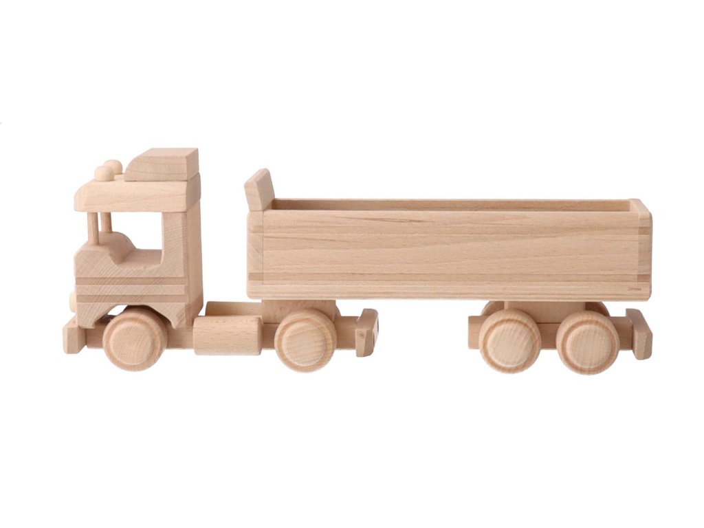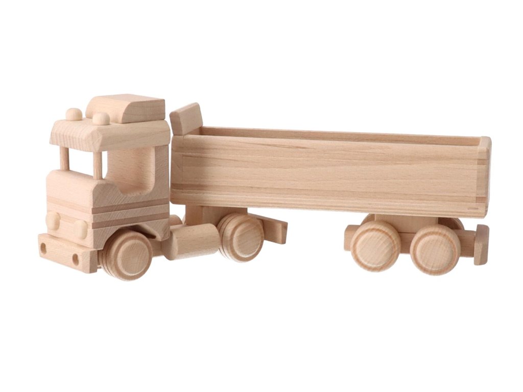 Het houten model van een vrachtwagen is een populaire speelgoed voor jongens van alle leeftijden. Het oppervlak is volledig natuurlijk, met kleuren kunt u een speelgoed of originele decoratie creëren volgens uw ideeën.