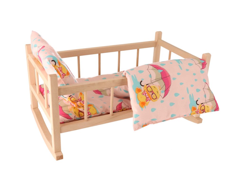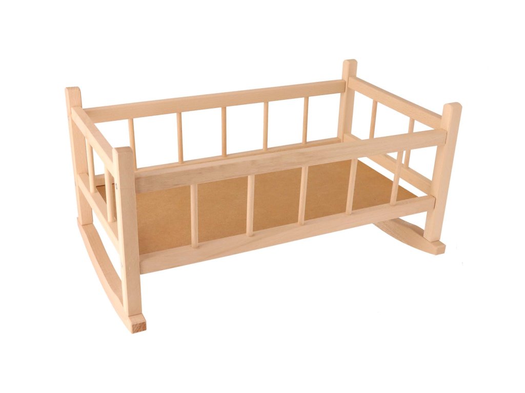 De houten wieg gemaakt van beukenhout tovert een glimlach op het gezicht van elk klein meisje dat met liefde voor haar poppen en knuffelberen zorgt.