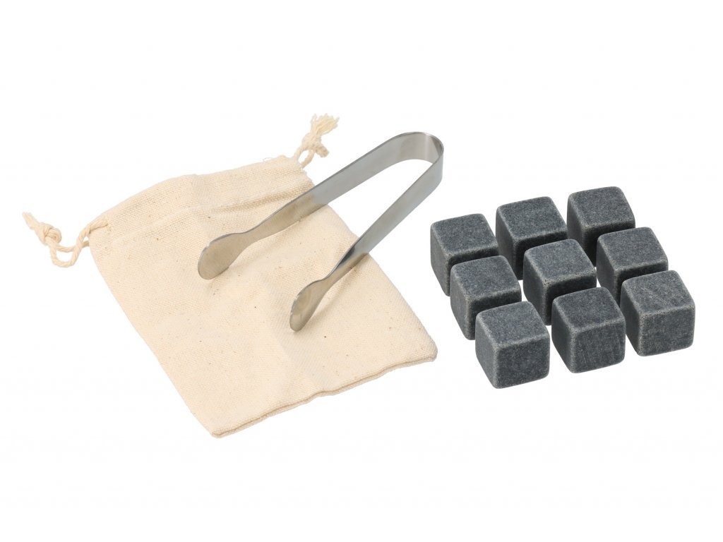 De set bevat een elegante bamboe doos, 9 ijsstenen, een tang en een katoenen zakje.