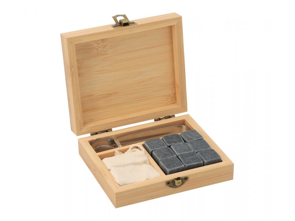 Ijsstenen voor drankjes in bamboe doos
