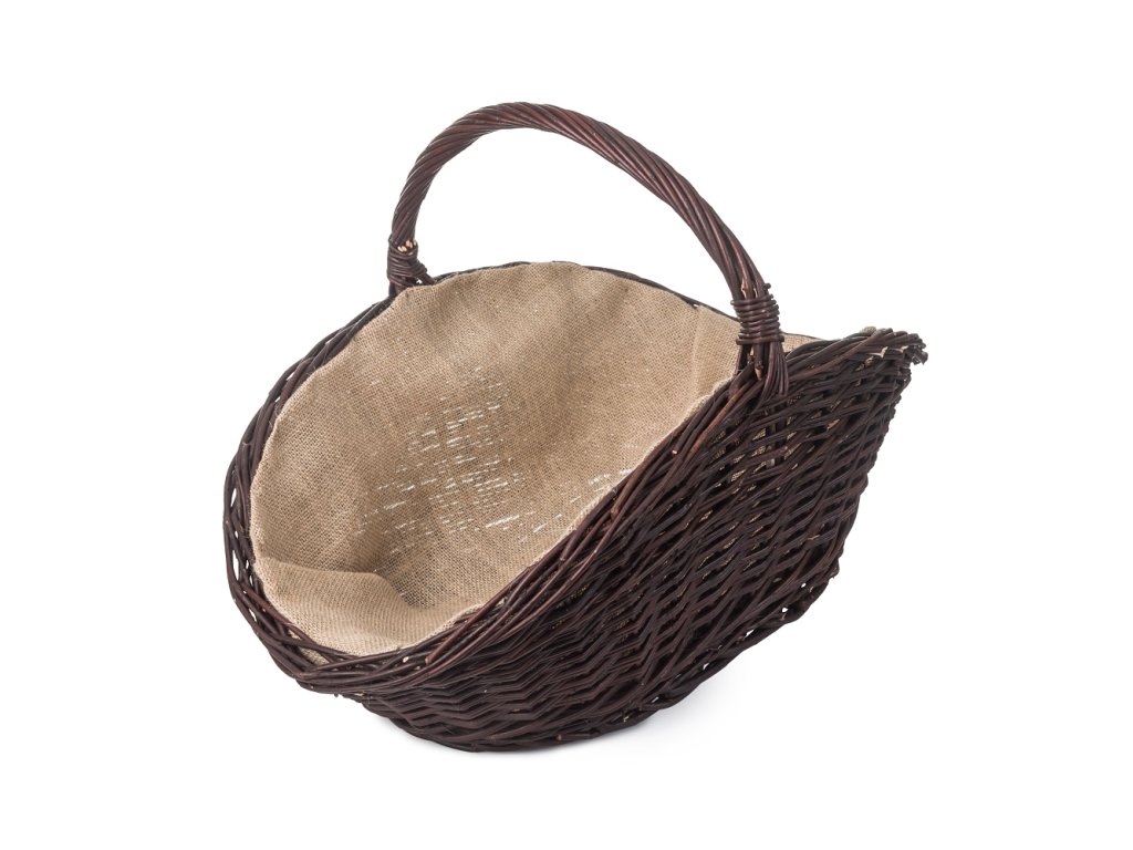 De ovale mand voor brandhout van wilgenriet met handvat zal een echte hulp zijn bij het dragen van brandhout in de koude maanden en tegelijkertijd een elegante versiering bij uw haard.