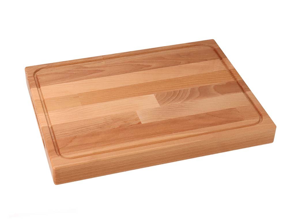 Massief snijplank van 40 x 30 x 4 cm, geschikt voor het snijden en serveren van brood, groenten, maar ook vlees. Gemaakt van hoogwaardig gestoomd beukenhout.