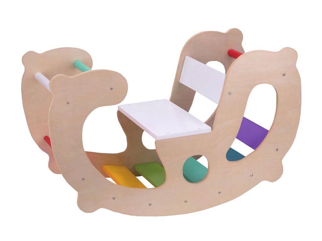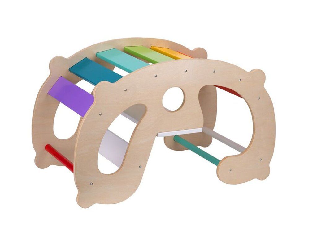 De 2-in-1 houten binnenschommel biedt kinderen volop mogelijkheden om te spelen. Dankzij de Montessoriprincipes waarop hij is gebaseerd, wordt het leerproces op een speelse manier ondersteund. Kinderen kunnen er niet alleen op schommelen, maar door de schommel om te draaien verandert deze in een leuke glijbaan. Ze kunnen de regenboogladders op verschillende manieren beklimmen of door de schommel kruipen – activiteiten die de motoriek, het evenwicht en de coördinatie verder ontwikkelen.
