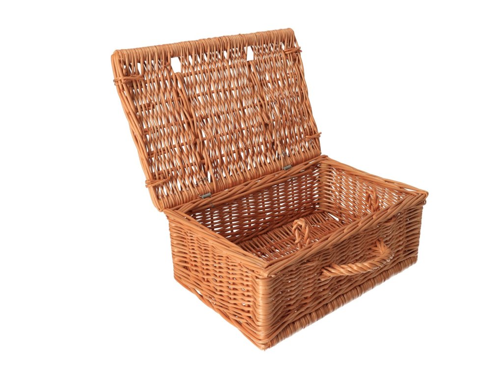Lichte mand in vierkante vorm, geweven van geschilde wilgentakken, verbergt alles wat je niet in het zicht wilt hebben. De mand heeft een handvat voor gemakkelijke handling en een decoratieve lijn aan de bovenkant.