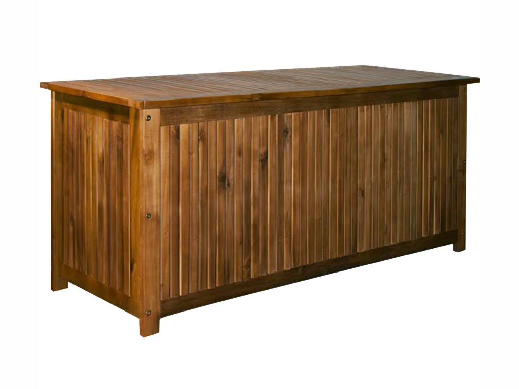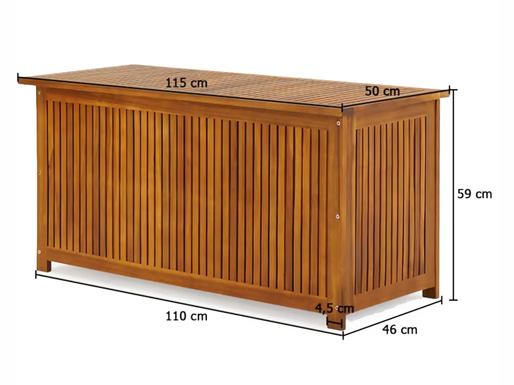 Deze opbergbox voor in de tuin, gemaakt van massief acaciahout, is de ideale oplossing voor het opbergen van zitkussens, sierkussens, tuinmeubelhoezen, gereedschap of kinderspeelgoed. Dankzij het praktische ontwerp blijft uw tuin, terras of balkon netjes en opgeruimd.
