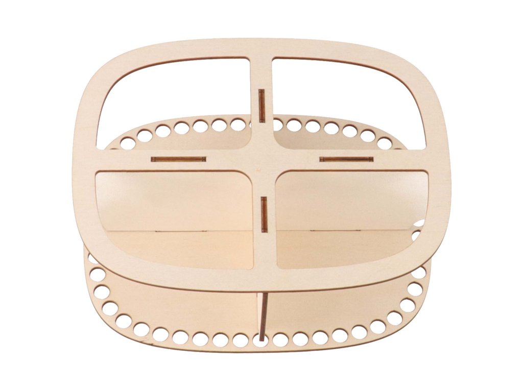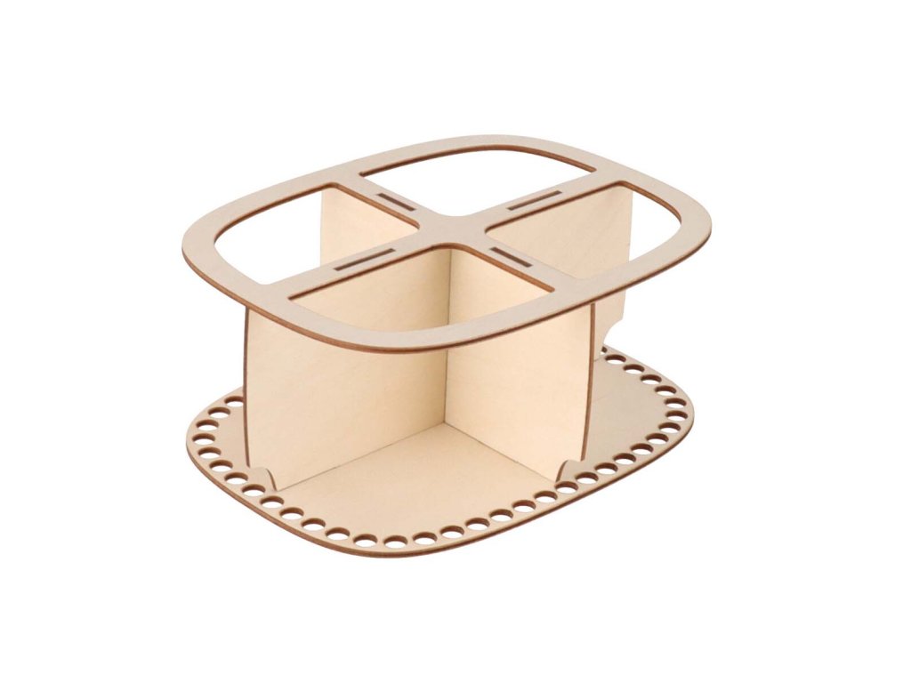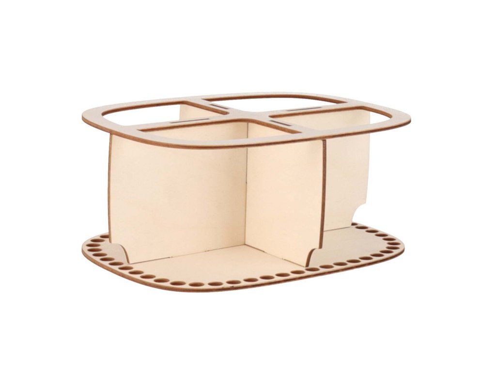 De constructie voor het maken van de gehaakte organizer is gemaakt van berken multiplex met een dikte van 3 mm. In de vakken kunt u thee, cosmetica, kantoorbenodigdheden en allerlei kleine spulletjes opbergen.
