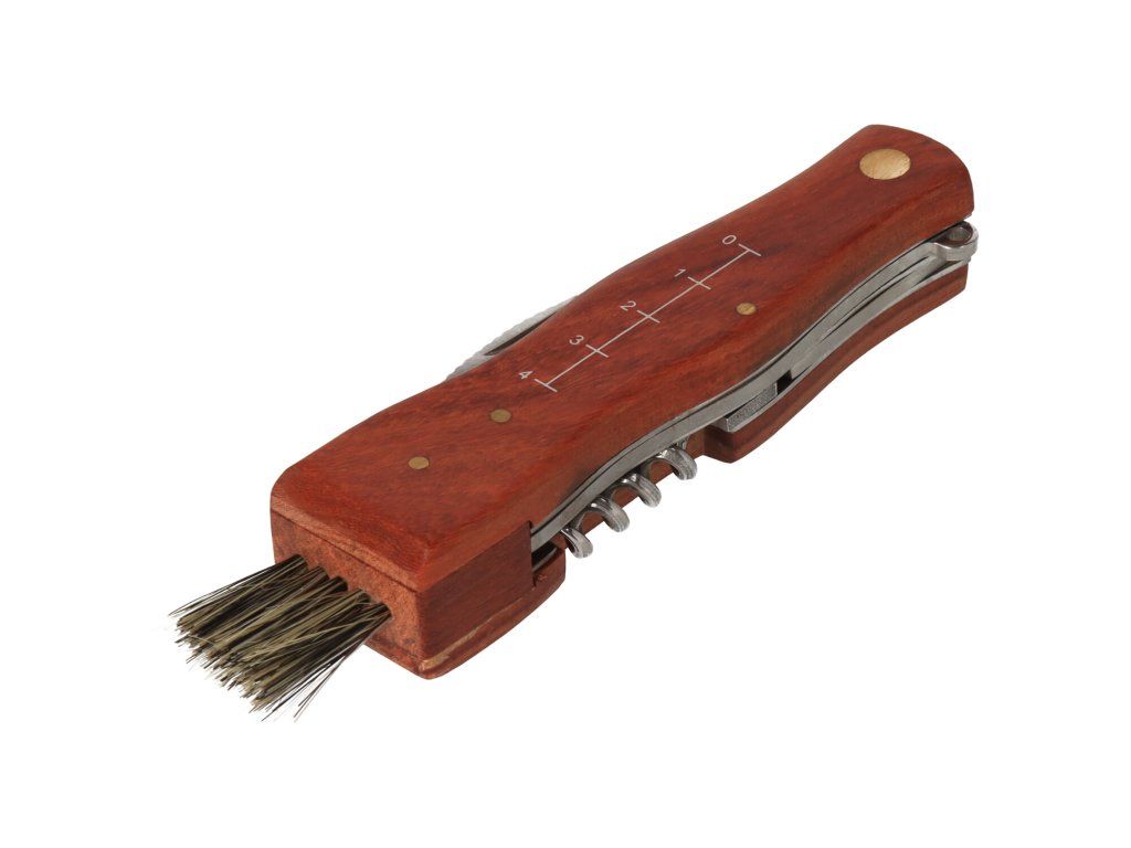 Een paddenstoelenmes met een opvouwbaar lemmet en een borstel voor het schoonmaken van paddenstoelen is een onmisbaar accessoire voor elke paddenstoelenplukker. Het mes heeft ook twee openers, zodat je je geen zorgen hoeft te maken dat het mes buiten het seizoen in de kast ligt.