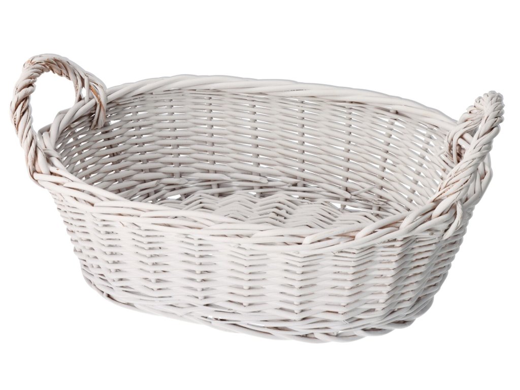 Handgeweven broodmand van kwalitatief wilgenriet in witte kleur. Deze mand is ook geschikt als designstuk voor in huis of als praktische hulp voor uw bedrijf.