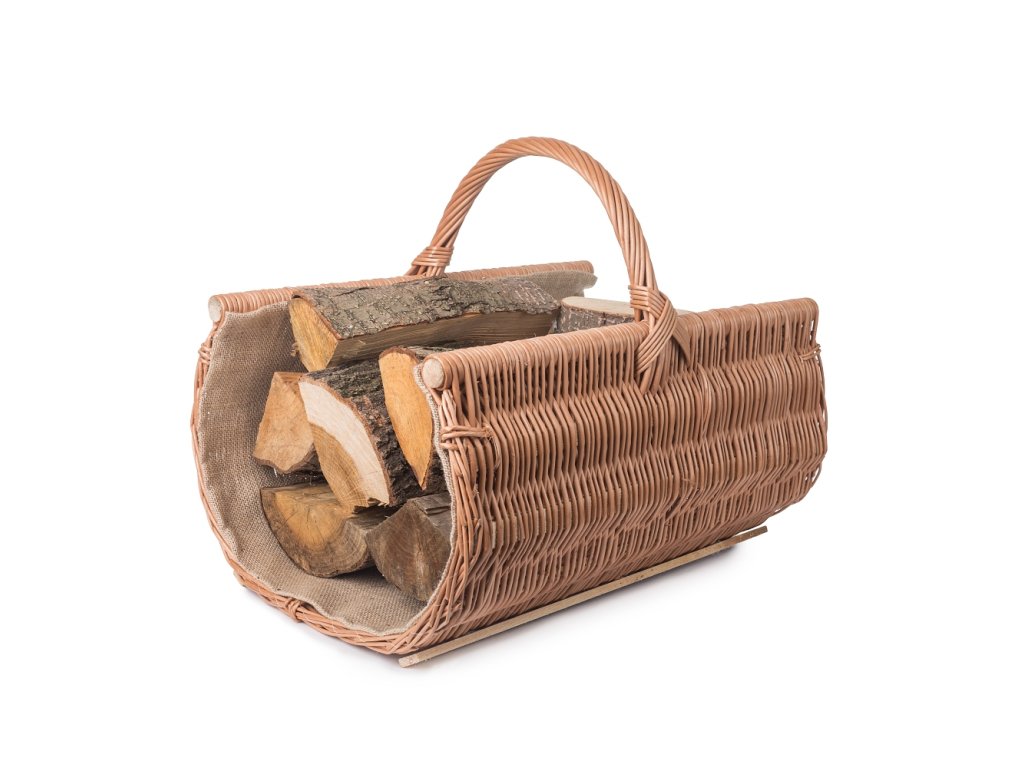 De mand is omzoomd met jute, zodat er geen vuil en splinters op de grond vallen en er niet na elke keer dat je het vuur aansteekt, opgeruimd hoeft te worden.