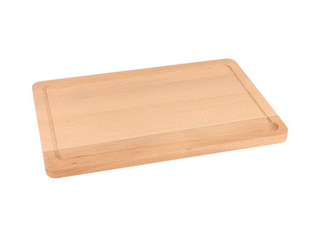 Robuuste snijplank van hoogwaardig beukenhout van 45 x 30 cm, geschikt voor snijden en serveren. De goot langs de plank dient voor het afvoeren van overtollige vloeistoffen.