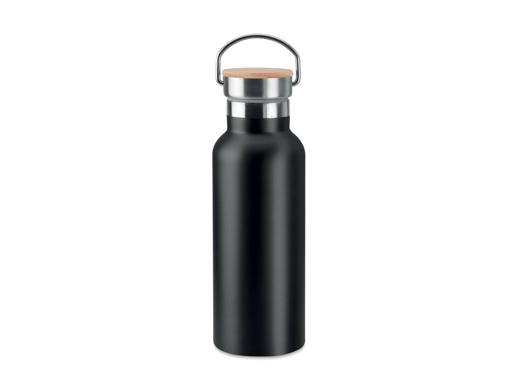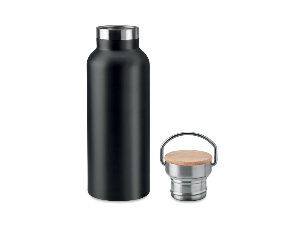 Het is gemaakt van voedselveilige roestvrij staal, gemakkelijk schoon te maken, absorbeert geen geuren en beïnvloedt de smaak van de drank niet. Dankzij de duurzame poedercoating ligt de fles stevig in de hand en de strakke bamboe dop voorkomt effectief het lekken van vloeistoffen.