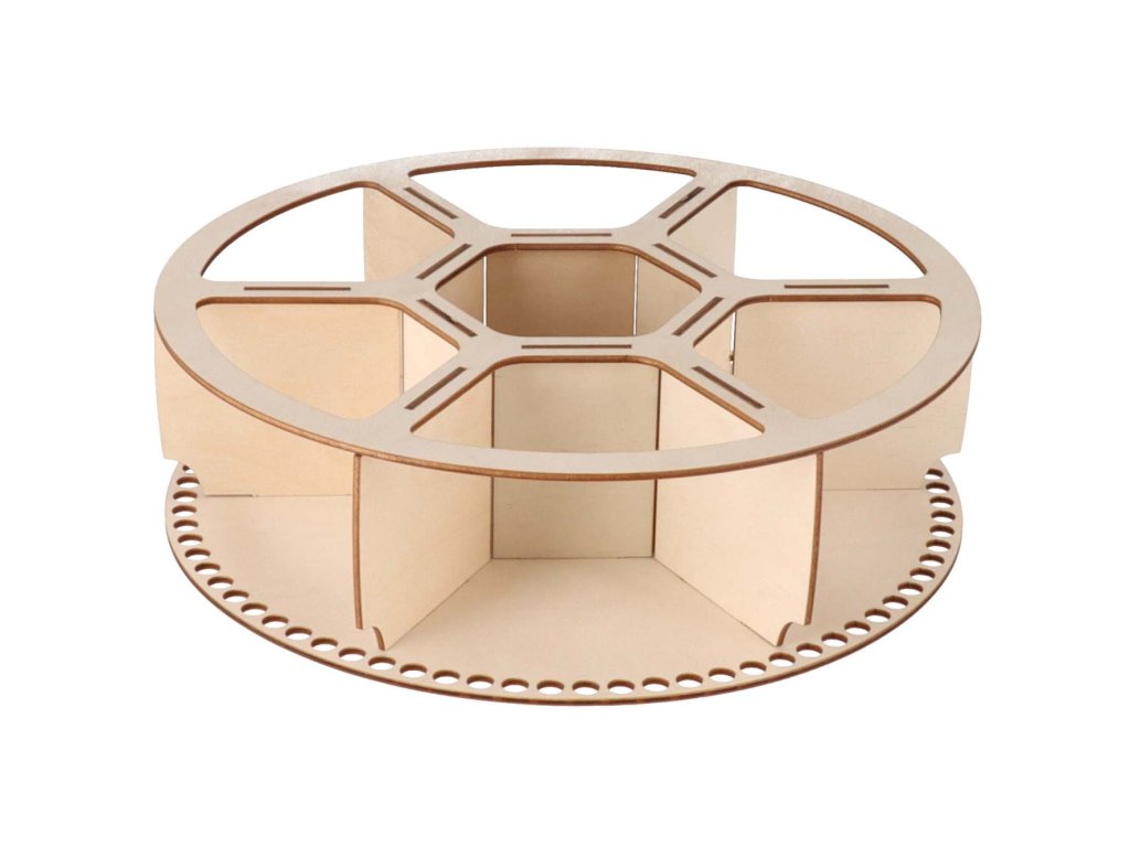 De organizer met een ronde basis gebruik je voor het maken van een originele en tegelijkertijd praktische gehaakte decoratie. Je kunt er cosmetica, kantoorbenodigdheden en allerlei kleine spulletjes in opbergen.