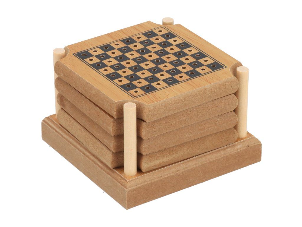 Set van 4 onderzetters en bordspellen waarmee je veel plezier zult hebben! Draai de onderzetter om en je ziet welk spel eronder verborgen is. Terwijl je geniet van een drankje met vrienden, kun je kiezen of je schaken, dammen, backgammon of bijvoorbeeld Chinese dam wilt spelen.