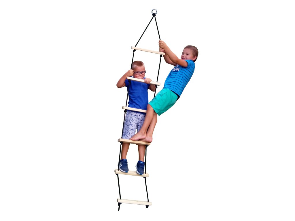 De touwladder is een ideale schommel voor kinderen, geschikt voor gebruik in de tuin, maar kan ook binnenshuis in de kinderkamer worden opgehangen.
