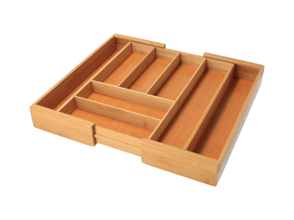 Bamboe bestekorganizer die zorgt voor perfecte orde in de keuken. Dankzij twee uitschuifbare compartimenten kunt u de afmetingen eenvoudig aanpassen aan de lade. De lengte kan worden ingesteld van 35 tot 58 cm.