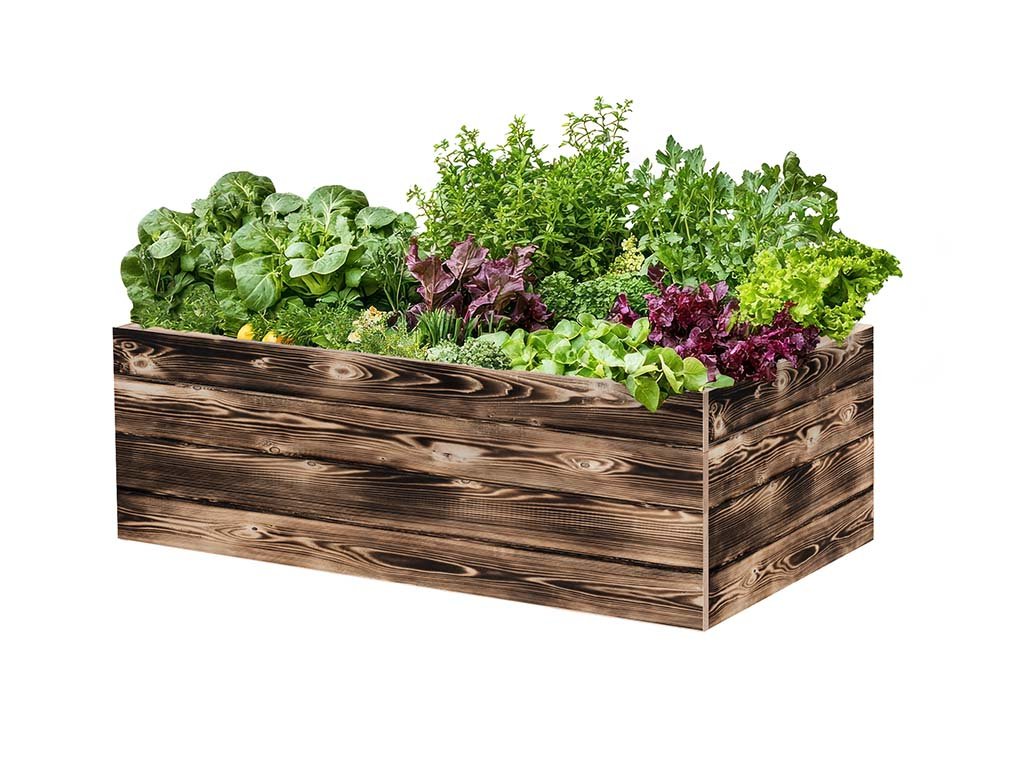 Verhoogd houten bloembed 120 x 60 x 40 cm - gebrand