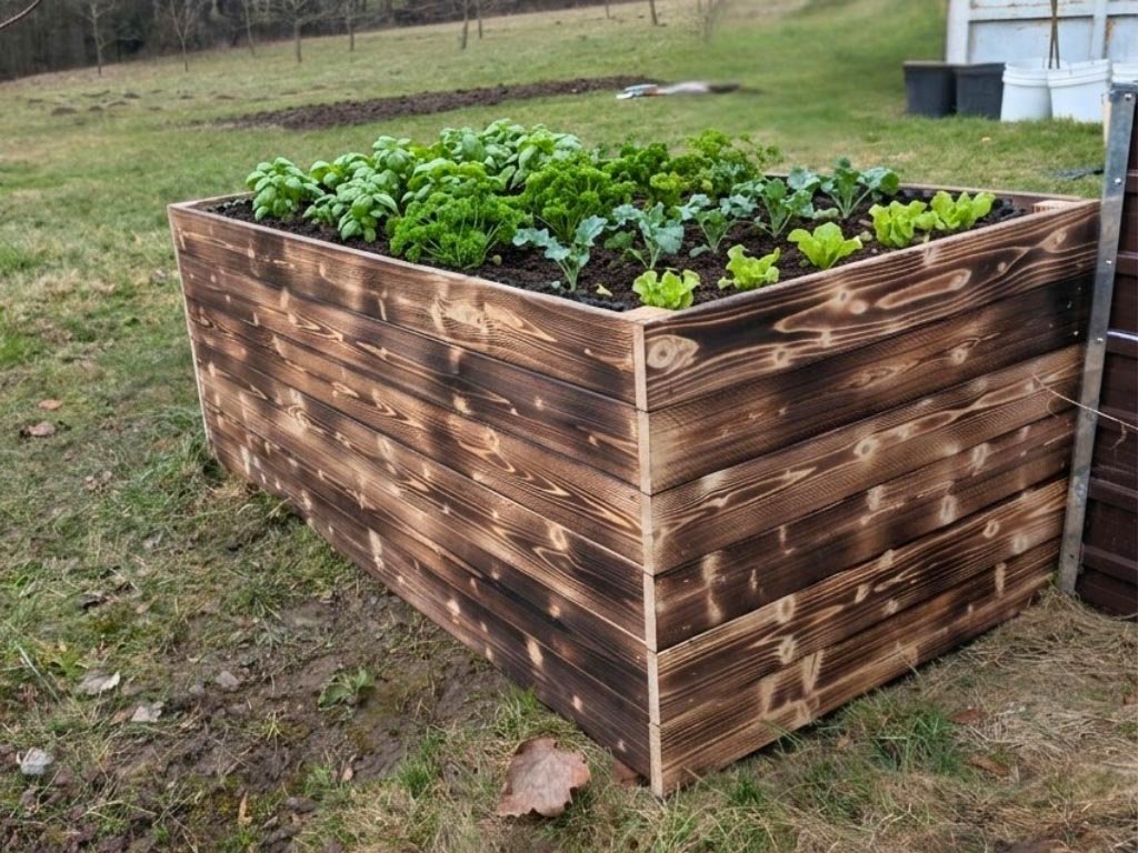 Verhoogd houten bloembed 160 x 100 x 60 cm - gebrand