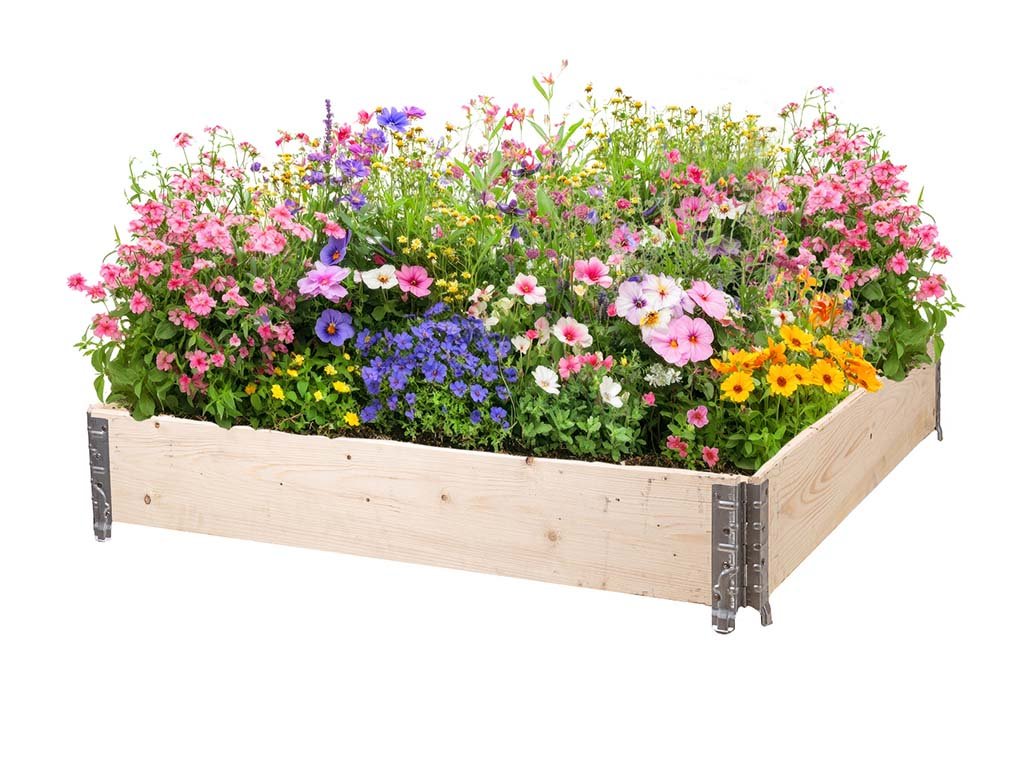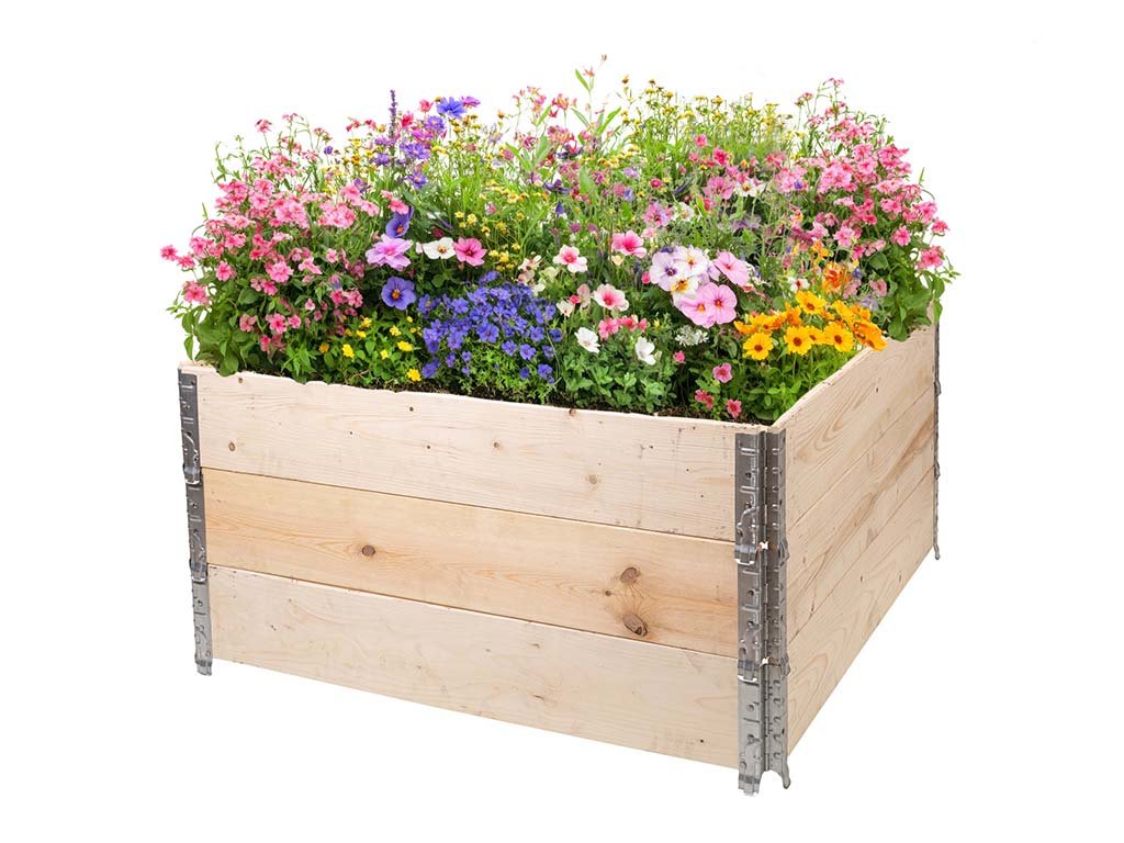 Verhoogd houten bloembed met beslag 120 x 120 x 20 cm